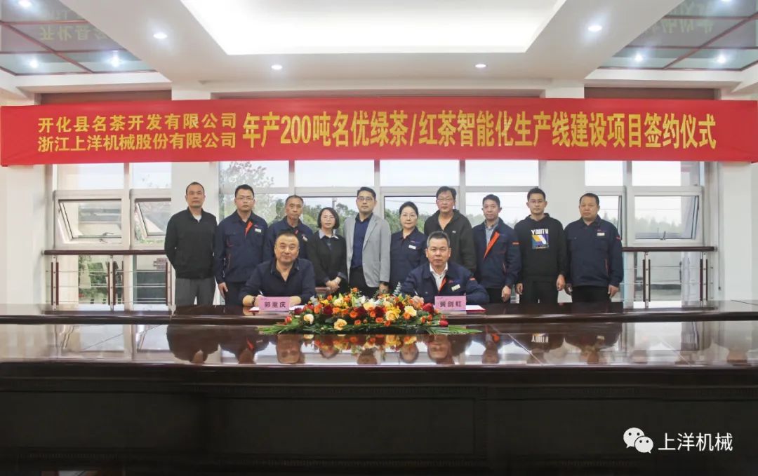10月24日,開化名茶開發有限公司與上洋機械正式簽約“年產200噸名優綠茶/紅茶智能化生產線”建設項目。