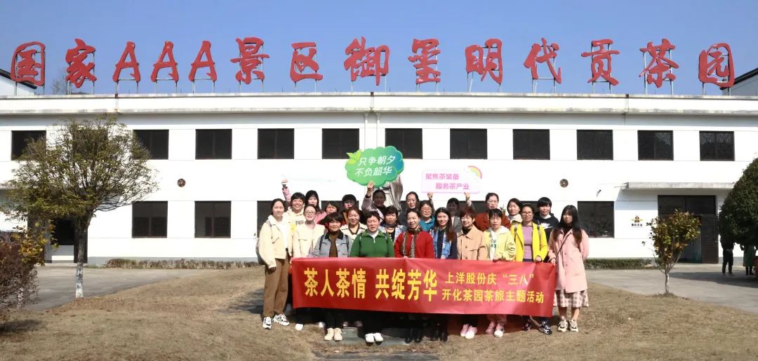 春芽吐新綠,清氣滿人間。3月5日,為慶祝第113個國際三八婦女節,豐富員工業余文化生活,感受不一樣的茶文化,公司開展了一次以“茶人茶情 共綻芳華”為主題的開化御璽茶園茶旅團建活動。