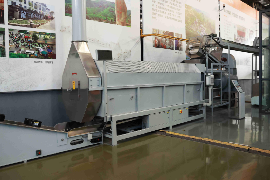 作業原理:機組運用自主發明的核心專利技術,遵循“透氣不悶”的制茶原理,茶葉在筒體內處于旋轉拋撒狀態,熱風充分接觸,受熱均勻,水份散發快、透氣性好,可連續完成茶葉的初脫水工藝流程。